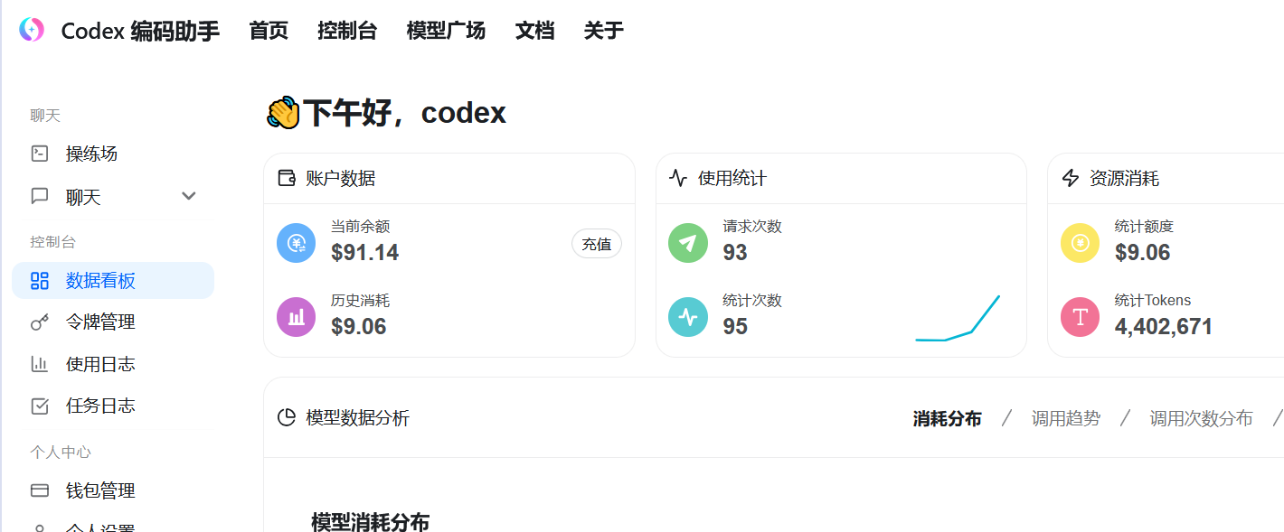 因为本站不赠送免费额度,所以需要先购买激活码并完成充值,后面才能正常创建令牌并调用模型。